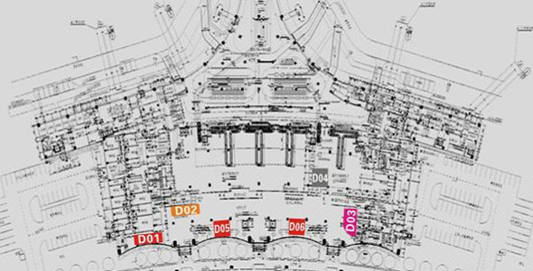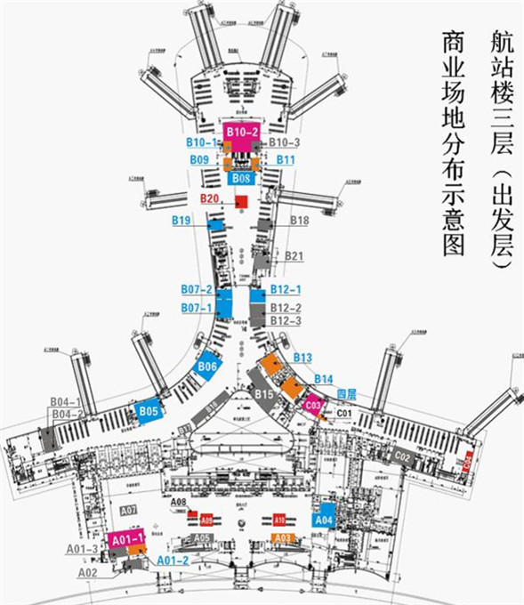 航站樓一層(到達(dá)層)商業(yè)場(chǎng)地分布示意圖