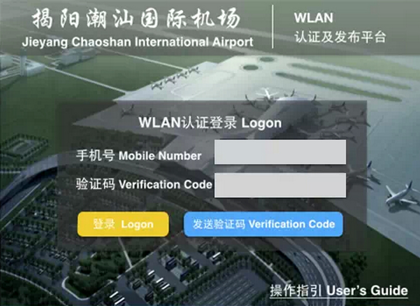 為了讓出行旅客更好地免費(fèi)使用揭陽潮汕機(jī)場(chǎng)無線網(wǎng)絡(luò)服務(wù),機(jī)場(chǎng)已開通無線上網(wǎng)接入功能。選擇機(jī)場(chǎng)免費(fèi)無線網(wǎng)絡(luò):“AIRPORT-FREE-WIFI”,通過瀏覽器打開任意網(wǎng)頁,根據(jù)提示輸入手機(jī)號(hào)碼和獲取手機(jī)短信驗(yàn)證碼登錄即可。
